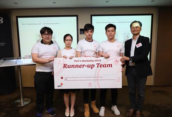 Two students of BSc Computer Science, LAI Wing Hang and CHIK Ho Ming, together with a student from EE, HUI Kam Leung and a student from IS (doing a minor in CS), SUNG Hiu Tung were Runners-Up in the 2nd PwC Hackaday competition. The competition tested the skills and knowledge of participating teams in four hacking categories: Network, Web, Binary and Internet-of-Things. Team members were awarded an opportunity of 3 month internship with PwC Hong Kong and Mainland China's Cybersecurity & Privacy team or direct entry to PwC Superday for final year students, plus part sponsorship toward the Offensive Security Certified Professional (OSCP) certification.