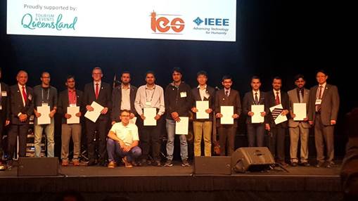 Mr Umair Mujtaba QURESHI, a CS PhD student, received the IEEE Industrial Electronics Society Students and Young Professional Paper Assistance (IES-SYPA) Award for his paper titled “Problem of Wireless Fingerprint Duplication in Fingerprinting based Indoor Localization” in the 27th IEEE International Symposium on Industrial Electronics (ISIE 2018) held in Cairns, Australia on 13-15 June 2018. This paper was co-authored with Ms Zuneera UMAIR, another CS PhD student and his supervisor Dr Gerhard Petrus HANCKE.