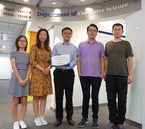 Three PhD students, Ms Qing MI, Mr Xiupei MEI and Ms Yan XIAO, together with their supervisors Dr Jacky KEUNG and Dr Wing Kwong CHAN, received the Excellent Paper Award for their co-authored paper titled "A Gamification Technique for Motivating Students to Learn Code Readability in Software Engineering" in the 4th International Symposium on Educational Technology (ISET 2018) held in Osaka, Japan on 31 July - 2 August 2018.