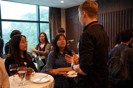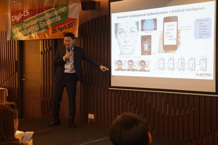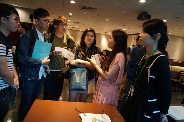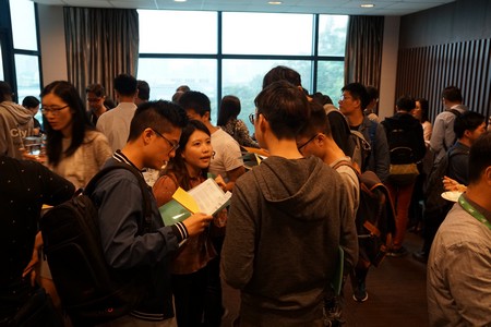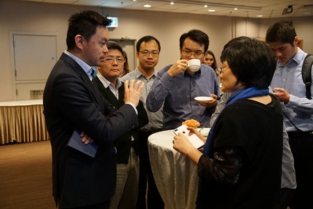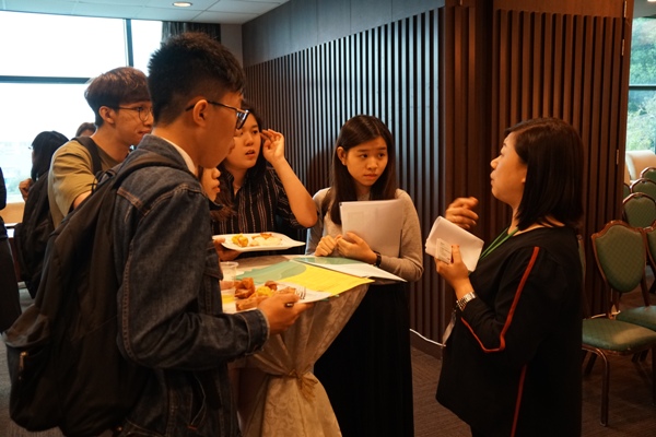 We were delighted that the Reception was attended by around 100 students and faculty members. The Reception started with a talk on the latest development in the financial technology given by Dr Duncan Wong, Vice-President of Financial Technologies at the Hong Kong Applied Science and Technology Research Institute (ASTRI), followed by a tea reception in which students had fruitful exchanges with the guest speaker and company representatives as well as genuine sharing among participants.