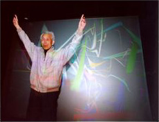 One of China's most renowned painters, Wu Guanzhong, turned his body into a brush and composed a 3-D drawing using CityU's innovative Body-Brush technology on campus on 13 March.