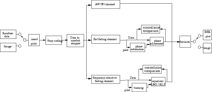 models (AWGN, flat fading and frequency selective fading channels), channel