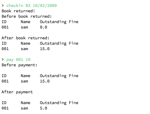 - A member pays fine. Fine rate is $3/day for children, $10/day for adult and $5/day for senior.
