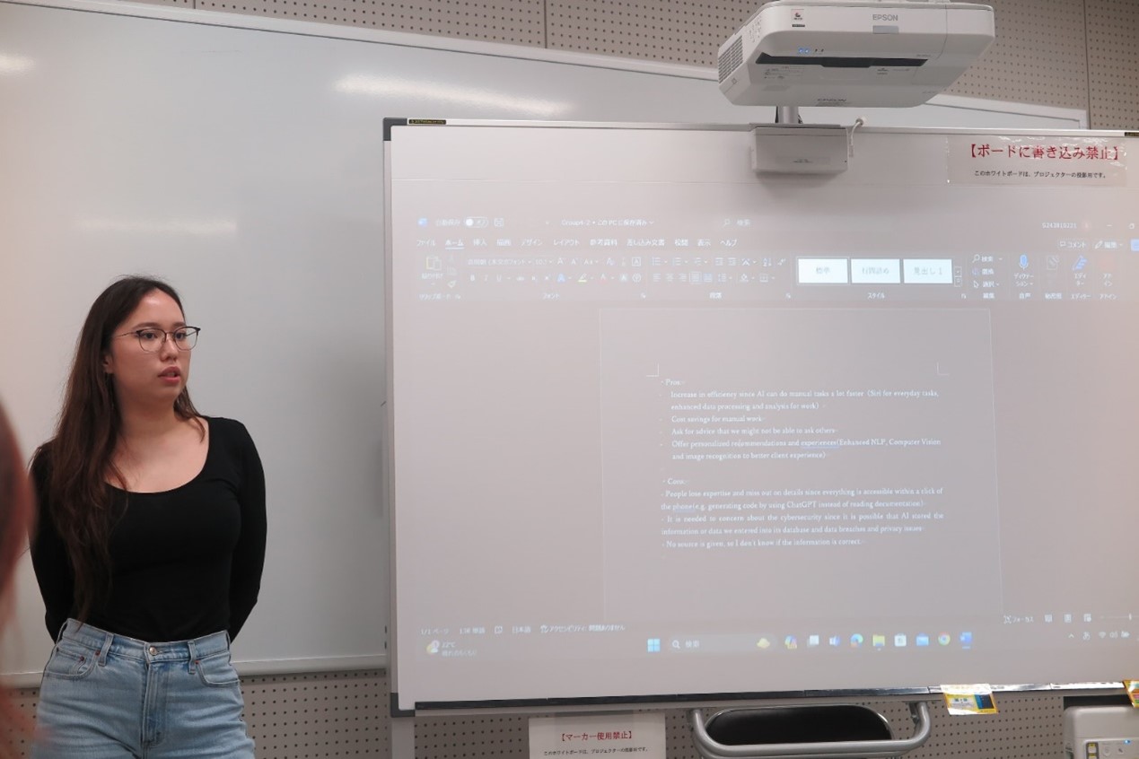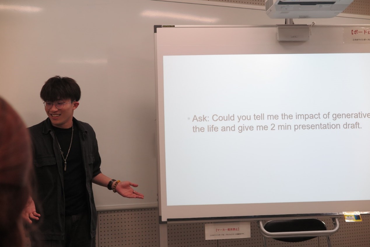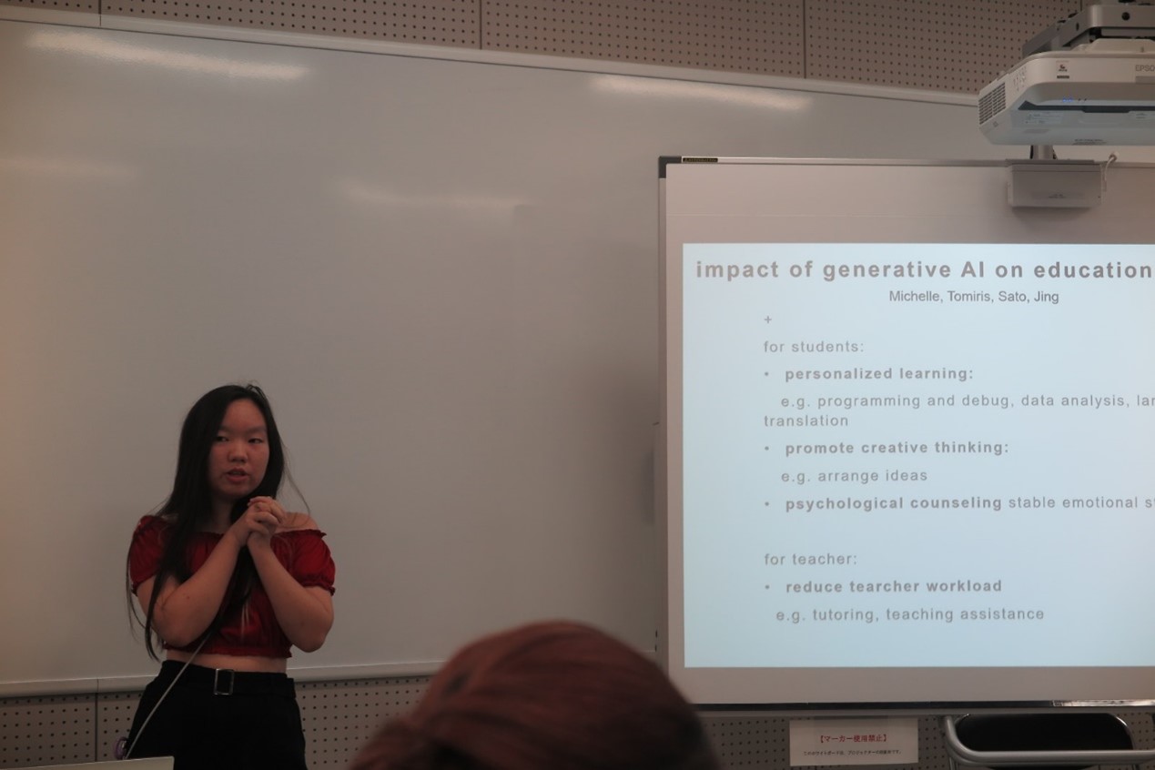 After the sharing, we had the opportunity to form groups with students at Waseda University. We were assigned to discuss our views on generative AI and present our ideas. In addition, we also took the opportunity to talk with local students and learn about university life in Japan.