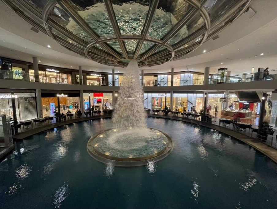 The flowing water continued its journey, entering the mall and transforming into a stunning indoor landscape. It was a sight to behold, blending art and nature seamlessly.