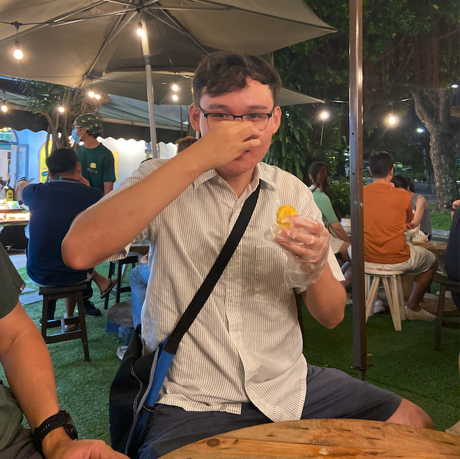 Since Nurda has never tried durian, we chose the ordinary Mao Shan Wang for him. Even though it cost S$74 for two packs, it was cheaper than buying in Hong Kong. The durians tasted a little bit bittersweet with a soft and creamy texture. We, durian lovers, all satisfy these good quality durians except Nurda. He said that the taste was so rich and didn’t know why he could taste sweet and bitter simultaneously. That is his first impression of eating durian. I hope Nurda will try durian again and enjoy its taste.
