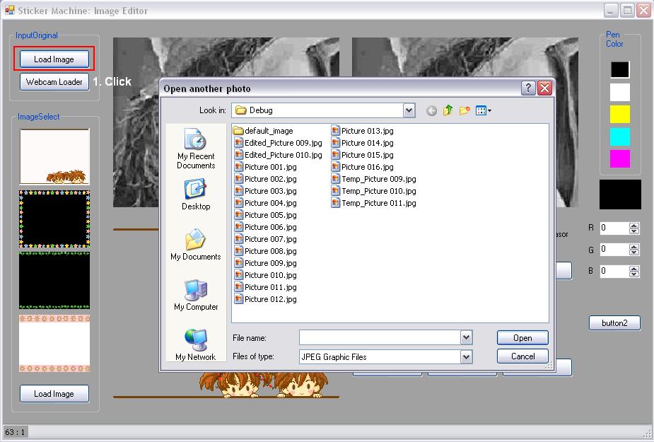Click the "Load Image" button in the Image Editor interface. A file explorer will be prompted up. User can use the image they want and the image will show in the original image box of the Image Editor interface. - Capture Image from Webcam