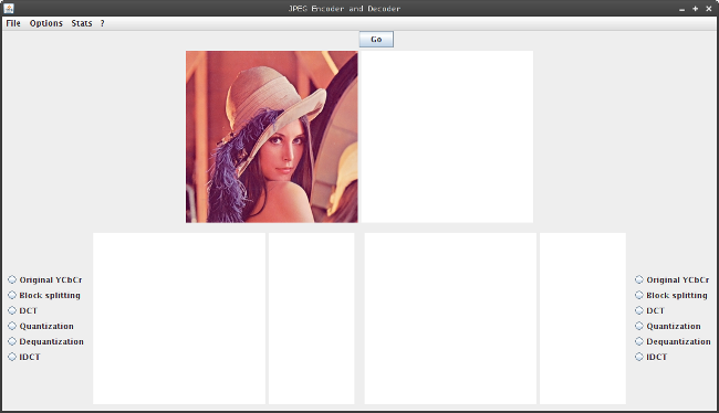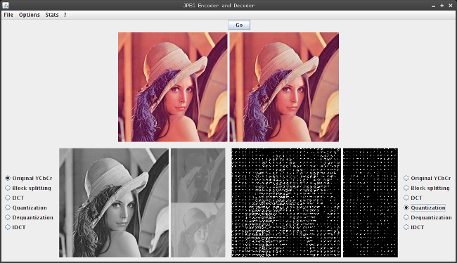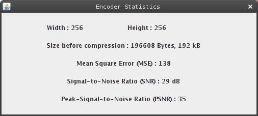 - View the original image and the resulting image. The resulting image has been encoded an decoded by the program.