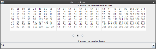 - Choose the quantization matrix for the luminance. The default matrix is the default quantization matrix for the JPEG compression.