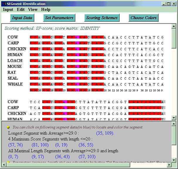 Then the alignment is displayed, and conserved segments (high score substrings)