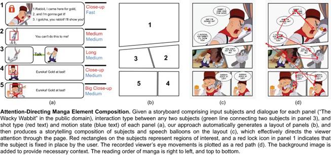 Ying Cao, Rynson Lau, and Antoni Chan, "Look Over Here: Attention-Directing Composition of Manga Elements," ACM Trans. on Graphics (SIGGRAPH 2014), 33(4), Article 94, Aug. 2014.