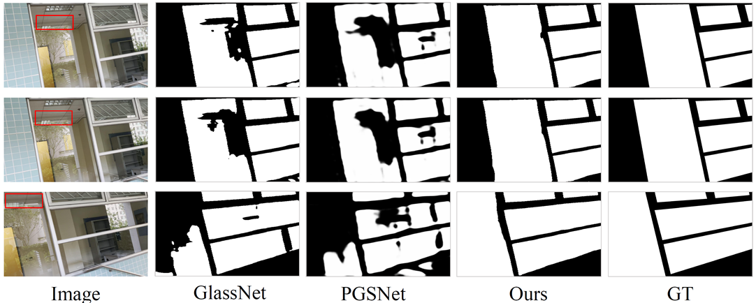 glass, the non-glass region can be corrupted (3rd row of (b)). GDNet can