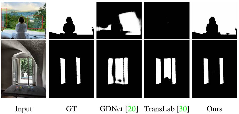 detection and segmentation of mirror and transparent glass surfaces. Although