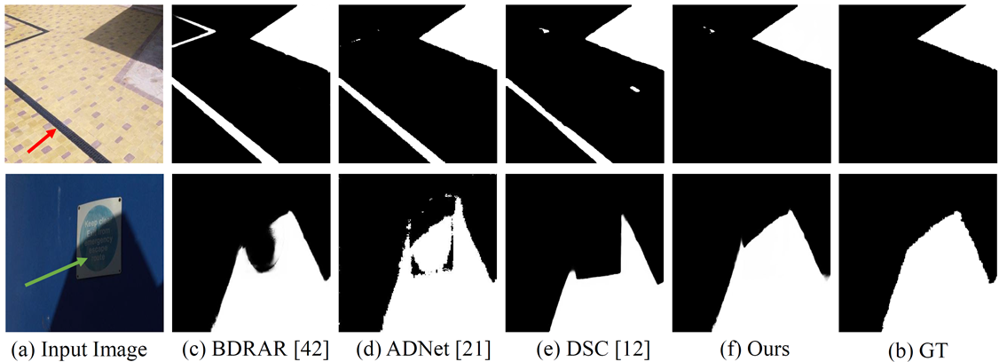 Shadows often appear in images. A shadow appearing on a surface is caused by light that is supposed to hit on the surface but blocked by an occlude. Shadows, in particular the strong ones, may affect the performances of downstream vision tasks, such as object detection. They may also affect the visual quality of some images. Hence, shadow detection and removal tasks are popular low-level vision tasks, and a lot of research has been conducted for these two tasks.
