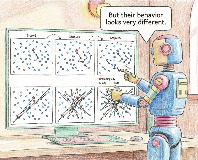 Rui Zhang, Zhichao Lu ICLR, 2026   arXiv / code A new way to distinguish algorithms from the perspective of problem-solving behavior, laying the groundwork for automated algorithm design with LLMs. |