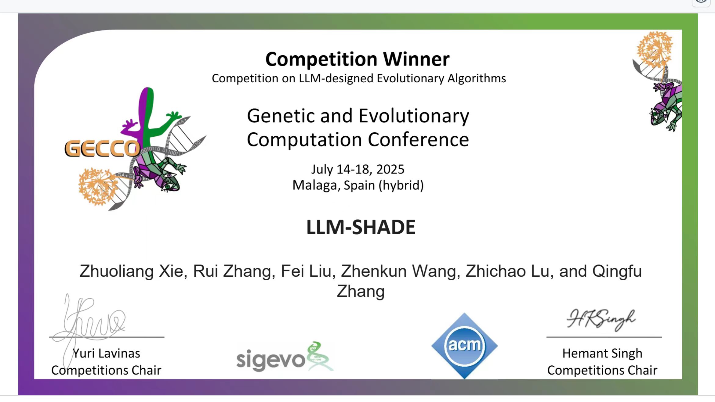 Assistant Professor City University of Hong Kong (CityU) luzhichaocn [at] gmail [dot] com Zhichao Lu received Ph.D degree in Electrical and Computer Engineering from Michigan State University under the supervision of Prof. Kalyanmoy Deb (FIEEE, FACM), where he studied bilevel optimization, evolutionary multi-objective optimization, and neural architecture search. In the broad context of AI, his current research focuses on the intersections of evolutionary computation, learning, and optimization, notably on developing efficient and automated ML/DL algorithms and systems, with the overarching goal of making AI accessible to everyone.